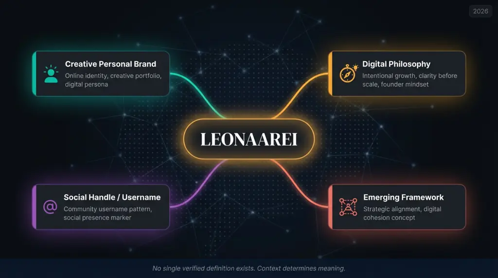 Leonaarei does not have a single canonically verified meaning as of March 2026. It appears in four documented digital contexts: a personal creative brand or identity, a founder philosophy centered on clarity before scale, a social handle or username pattern, and a conceptual framework for cross-platform brand coherence. The meaning in any specific article or community is determined by the source context.